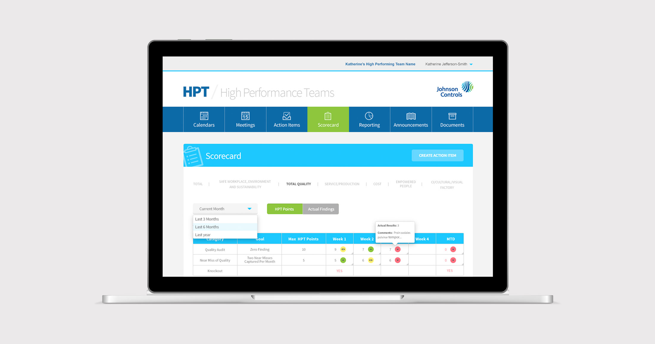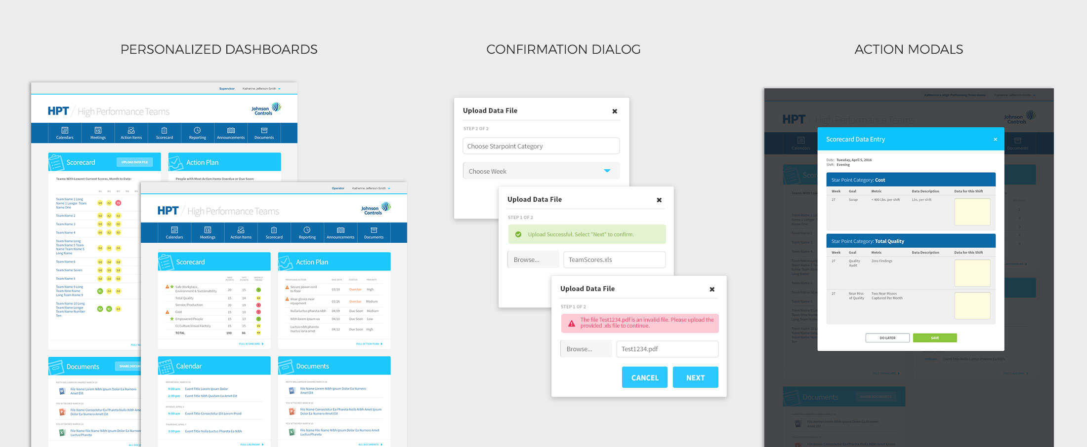 HPT (High Performance Teams) is Johnson Controls’ internal “scorecard” process to improve the efficiency of its 285 manufacturing plants. We were tasked to turn this process —previously accomplished by some rather scary, color-coded excel sheets—into an internal web application for operators, supervisors, area managers, HPT coordinators, and plant managers around the world.